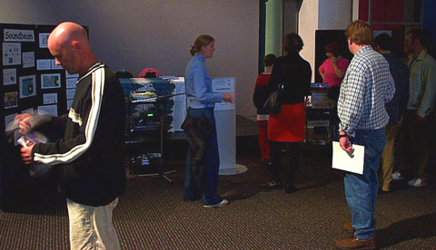 We were pleased to be invited to participate in 'Electronica - the science, technology and history of electronic and computer music'. Sydney Powerhouse Museum's Electronic Music event coincided with Science Week activities. We spent 6 days there in May 2001 demonstrating Soundbeaming.